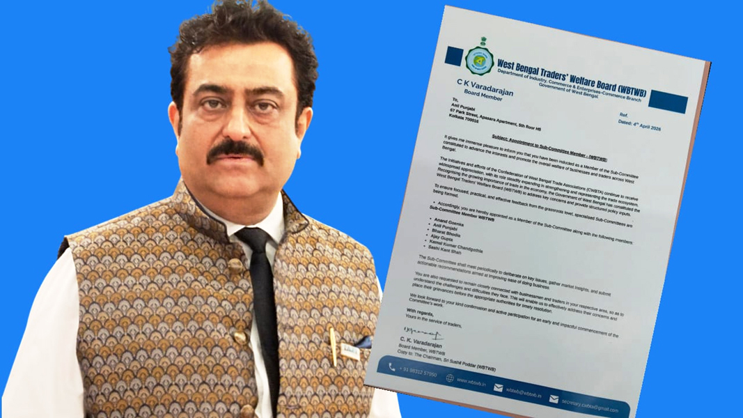 এসপিটি নিউজ, কলকাতা, ৯ এপ্রিল: রাজ্যের ব্যবসায়ী মহলে নতুন দায়িত্ব পেলেন অনিল পাঞ্জাবি। পশ্চিমবঙ্গ ব্যবসায়ী কল্যাণ বোর্ড-এর তরফে তাঁকে উপ-কমিটির সদস্য হিসেবে মনোনীত করা হয়েছে। বোর্ড সদস্য সি. কে. ভারদারাজনের স্বাক্ষরিত এক চিঠিতে এই নিয়োগের কথা আনুষ্ঠানিকভাবে জানানো হয়। চিঠিতে উল্লেখ করা হয়েছে, পশ্চিমবঙ্গের ব্যবসা ও ব্যবসায়ীদের স্বার্থরক্ষা এবং সার্বিক কল্যাণ নিশ্চিত করতে গঠিত উপ-কমিটিতে […]